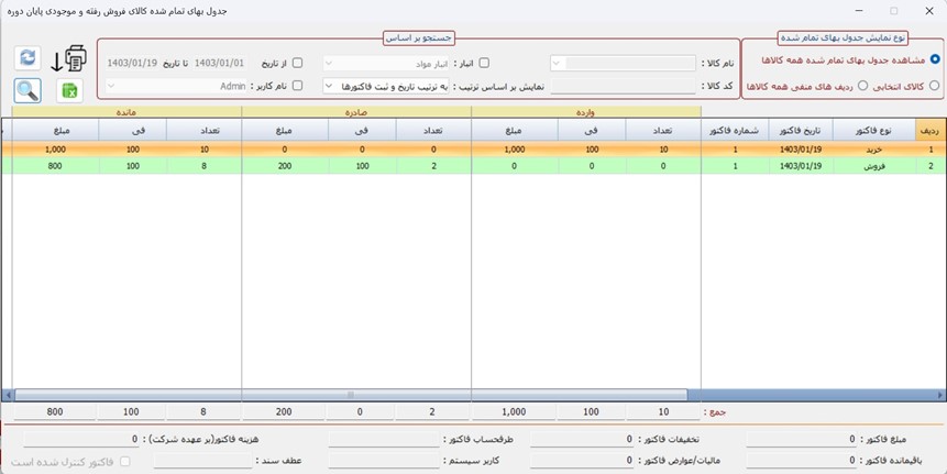 نمایش و چاپ جدول بهای تمام شده کالاها – نمایش و چاپ کاردکس کالاها